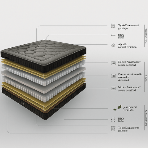 Tapa superior: tejido Damastretch de gran lujo + HRQ Extra + algodón natural reciclado.