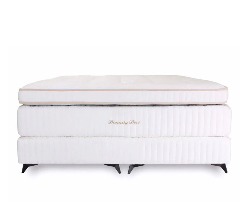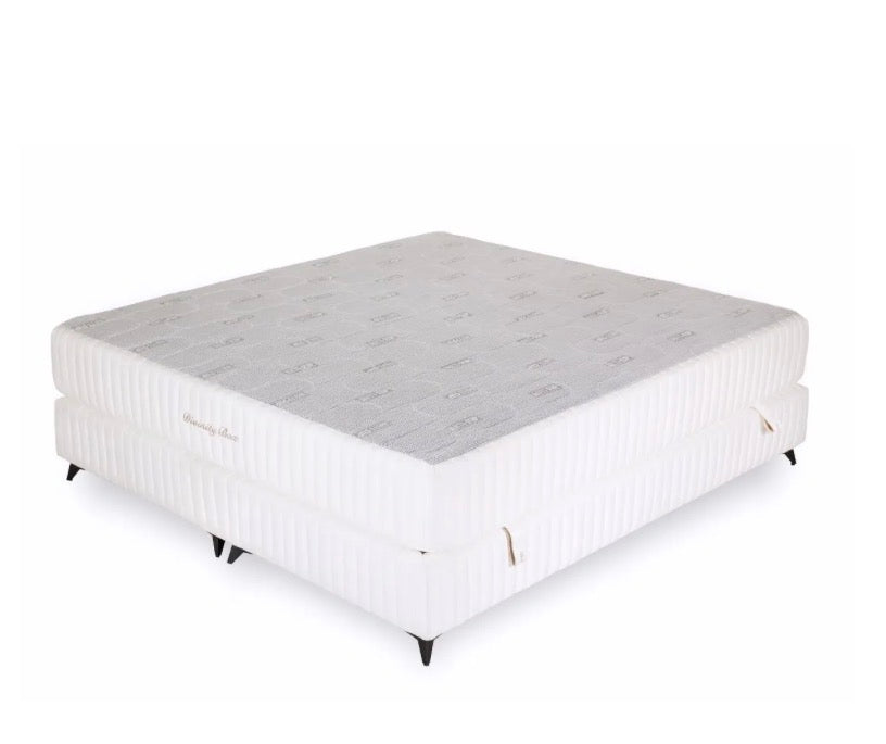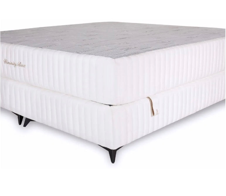 Colchón Dupen Divinity BOX con muelles ensacados y viscoelástica, combinado con base tapizada reforzada para un soporte estable, silencioso y altamente transpirable. Conjunto diseñado para ofrecer un descanso suave con adaptabilidad progresiva. Altura total del pack aproximada según configuración.