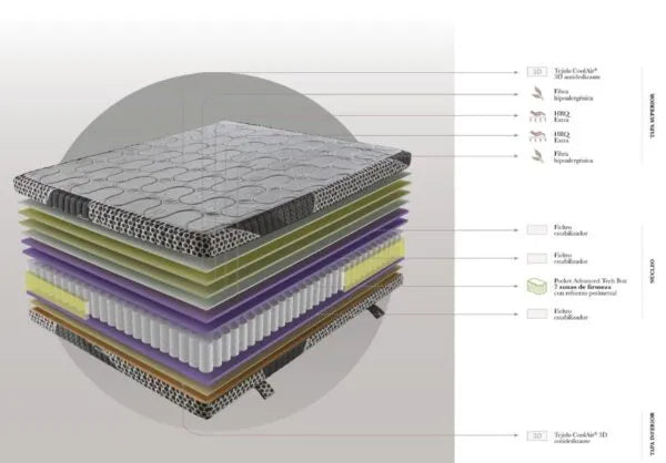 Funda : perimetral con CoolAir® 3D en el centro + fibras hipoalergénicas .